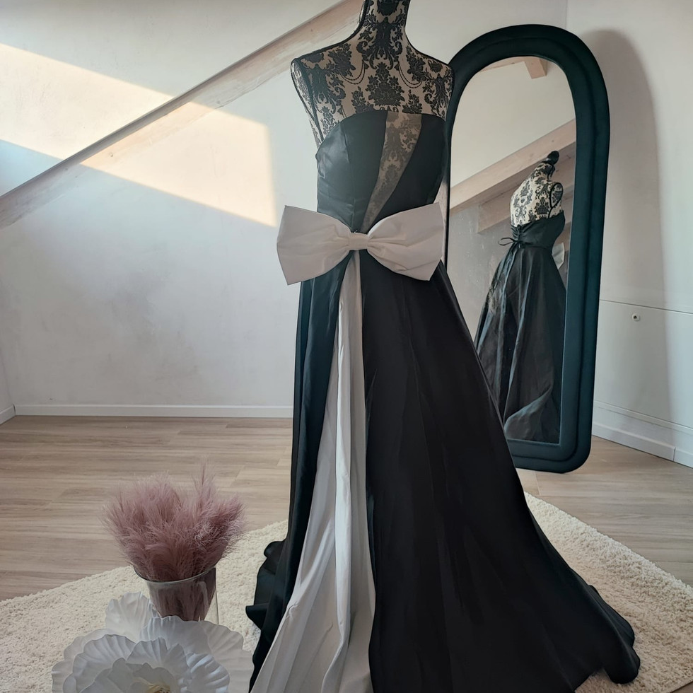 ABITO NERO CON SFUMATURA FRONTALE BIANCA IN RASO SOSTENUTO